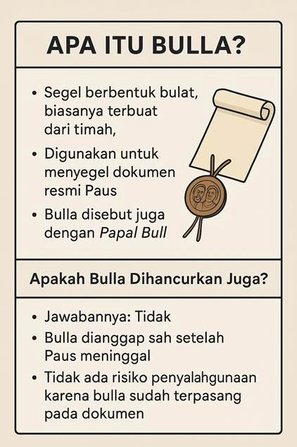 - Nama lengkap dokumen yang menggunakan bulla disebut "Papal Bull" (atau Bulla Apostolica dalam Latin).