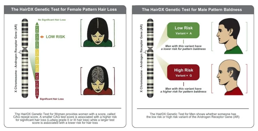 Sejak awal tahun 2000-an, berbagai studi ilmiah telah menyoroti peran penting gen Androgen Receptor (AR) dalam proses terjadinya androgenetic alopecia (AGA) atau kebotakan pola pria. Gen AR terletak di kromosom X, yang hanya dimiliki satu salinan oleh pria dan diwarisi dari ibunya. Gen ini mengkode reseptor androgen yang merespons hormon DHT (dihidrotestosteron)—hormon turunan dari testosteron yang memiliki efek paling kuat terhadap miniaturisasi folikel rambut.