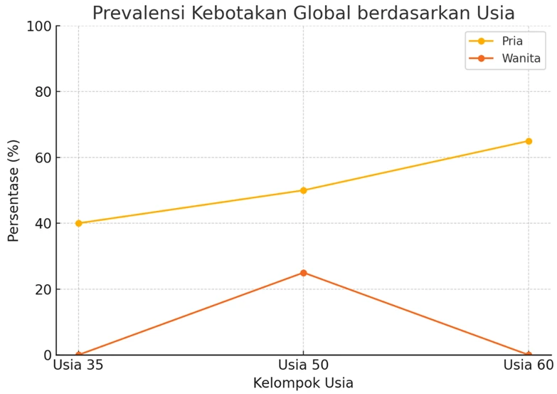 Secara global, kebotakan bukanlah masalah langka. Diperkirakan sekitar 50% pria dan 25% wanita di seluruh dunia mengalami androgenetic alopecia atau kebotakan pola saat mereka memasuki usia 50 tahun ke atas. Bahkan, 40% pria sudah mulai menunjukkan tanda-tanda kerontokan signifikan sejak usia 35 tahun. Angka ini terus meningkat seiring bertambahnya usia, di mana lebih dari 65% pria mengalami kebotakan yang nyata ketika menginjak usia 60 tahun.