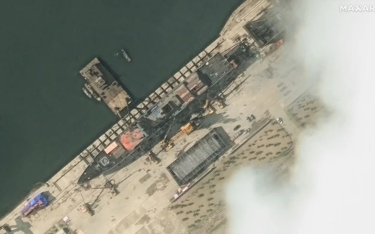 - Foto satelit komersial menunjukkan kapal miring ke satu sisi, dengan posisi yang berbahaya.